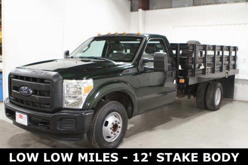 Recent Arrival! 2014 Ford F-350SD XL 2D Standard Cab RWD Green Gem Metallic **LOW LOW MILES, **12' STAKE BODY READY WORK TRUCK, 6.2L V8 EFI SOHC 16V Flex Fuel, Dual Rear Wheels. Located in Aledo Illinois, Essig Motors has been family owned and operated since 1989. Owner Jim Essig's experience in the auto industry began in 1975 working for his father's dealership in Washington, Illinois. We are honored to serve Mercer county, surrounding areas, and our growing online community with new, certified pre-owned, pre-owned, and also new and pre-owned commercial vehicles. Essig Motors offers an exceptional selection of new cars, trucks and SUVs including Chevrolet, GMC, Chrysler, Jeep, Dodge and Ram. Our knowledgeable, friendly sales staff is here to answer your questions and help you find the vehicle that meets your needs today!